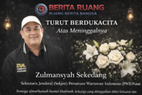 PEKANBARU | BERITA RUANG — Kabar duka menyelimuti dunia pers nasional. Sekretaris Jenderal Persatuan Wartawan Indonesia (PWI) Pusat masa bakti 2025–2030, Zulmansyah Sekedang, meninggal…